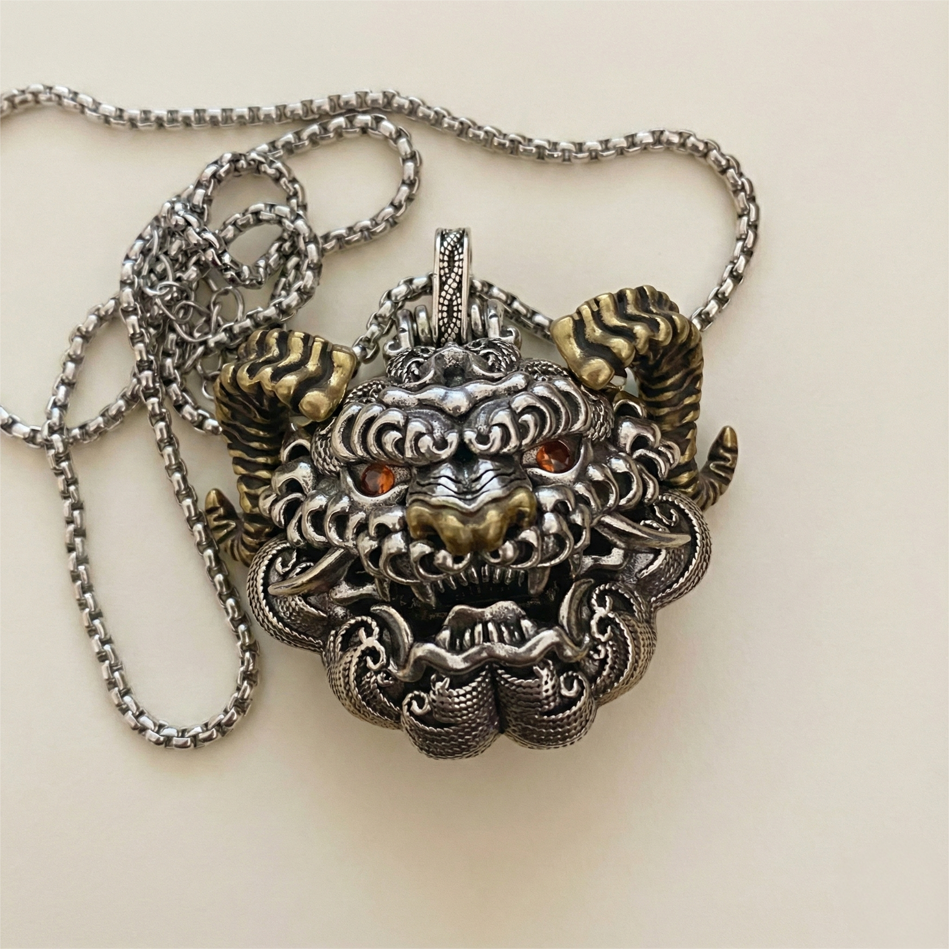 Shaolin-Inspired Taotie Mythical Beast Openable Pendant Necklace | Retro Chinese Guardian Amulet