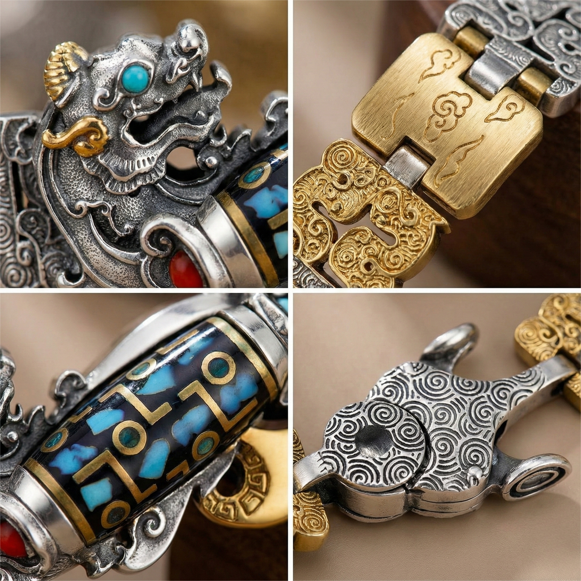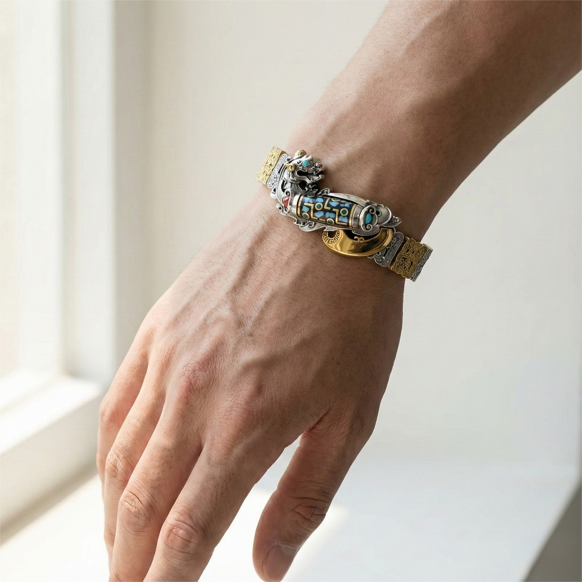 • Crafted from pure silver with iconic Nine-Eye Dzi Bead and Pixiu (a revered guardian beast) details, this Shaolin-inspired men’s bracelet blends retro Chinese trend aesthetics with fortune-turning symbolism. Its high-speed rotatable dzi bead adds a playful, stress-relieving touch, while bold, intricate carvings make it a standout accessory for stylish, culture-loving gentlemen.